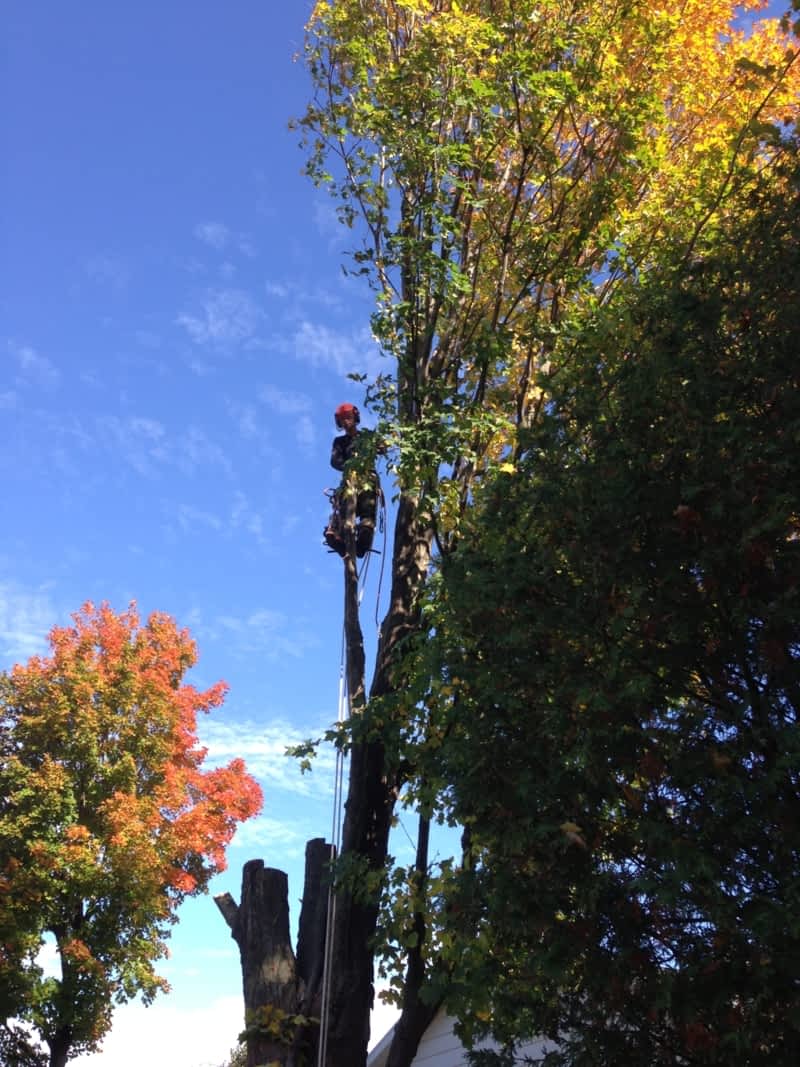 Notre approche de « grimpe et coupe » permet de couper l’arbre sur place sans endommager son environnement. De plus, la technique Arbrexcel ne laisse aucune trace de machinerie lourde sur votre terrain. Après l’abattage, nous déchiquetons les débris et nous nous assurons qu’ils seront recyclés ou réutilisés.